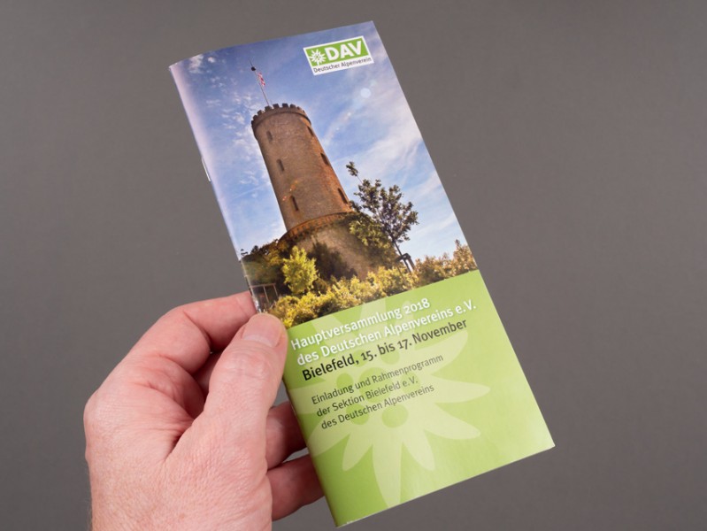 Entwurf, Layout und Umsetzung der 32-seitigen Einladungsbroschüre zur Hauptversammung des DAV